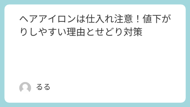 こんにちは、るるです😊副業でせどりをしています。この記事では、ヘアアイロン系商品の値下がりが早い理由と、仕入れ・販売での注意点をまとめました。ヘアアイロン系商品の値下がりが早い理由新製品の発売が早い ヘアアイロンは美容家電の中でも新モデルの...